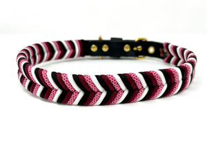 Collier pour chien en Biothane noir, paracorde noire, blanc, burgundy, diamond rose, quincaillerie or.