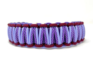 Collier pour chien en Biothane mauve, paracorde lias, burgundy et diamond mauve, ganse burgundy, quincaillerie or.