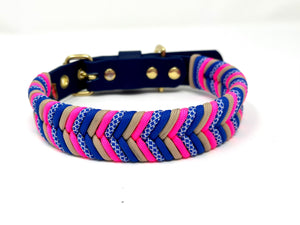 Collier pour chien Biothane marine, paracorde bleu, rose, crème et diamond bleu, quincaillerie or