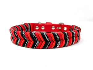 Collier pour chien en Biothane rouge, paracorde rouge (2), noire, diamond , quincaillerie argent.