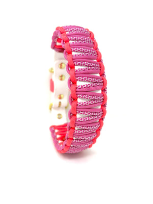 Collier pour chien en Biothane blanc, paracorde rose flash, Diamond rose et rose, ganse rose, quincaillerie or.